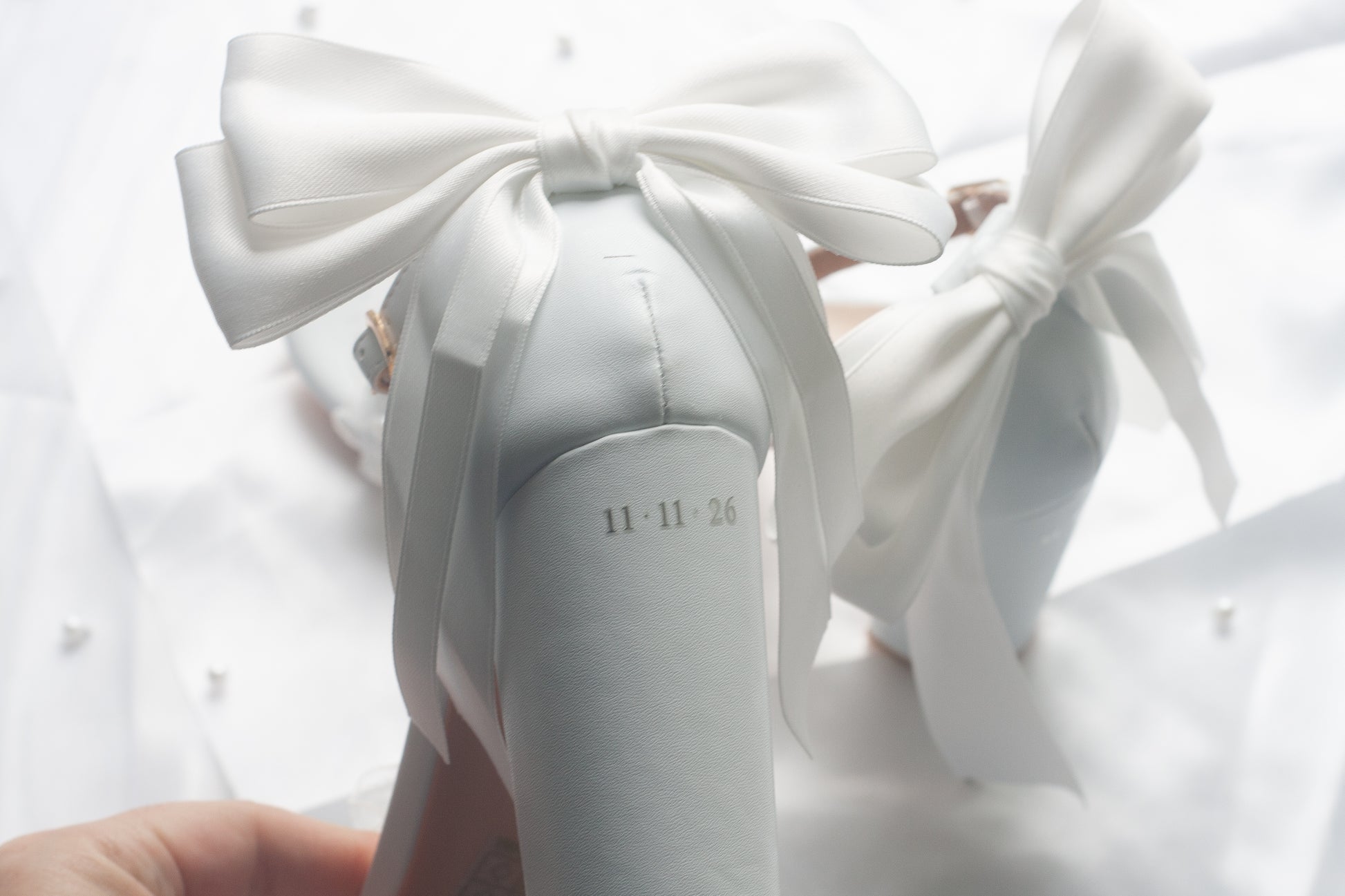 This listing includes an embroidered pair of white 4 inch heels. Regarding the overall design, please note that the embroidery design, the location of the text placement, and the featured shoe must remain consistent with the listing photos. Each pair is made to order—once I receive the shoes from my retailer, I’ll begin customizing your pair.