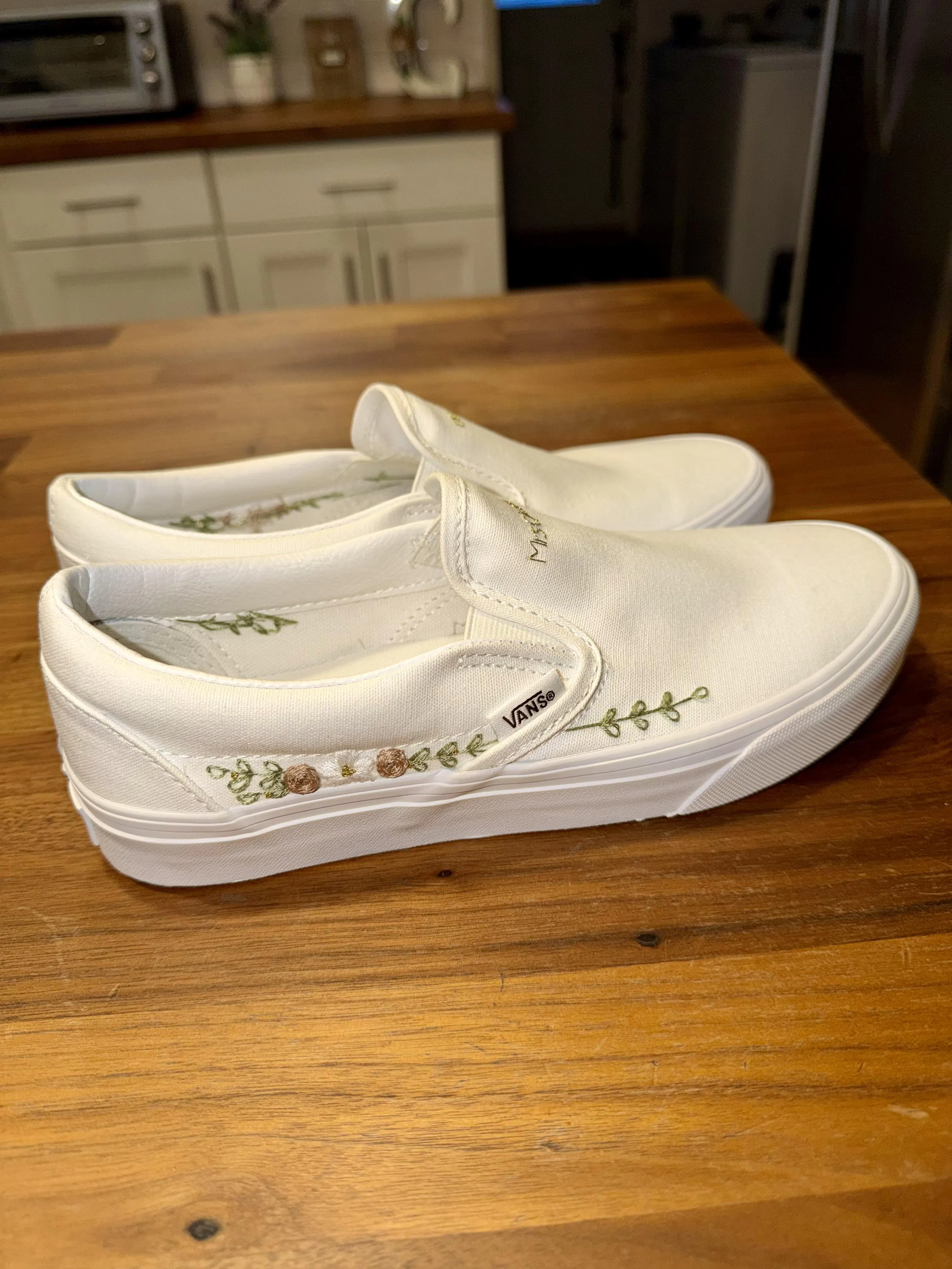 This listing is made to order and produced in accordance with the design shown in the listing photos. The embroidery design, text placement, and featured shoe must remain consistent with the images provided. While this listing’s color palette is not customizable, other listings offer the option to customize the color palette.